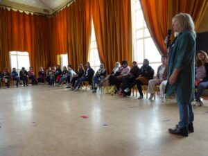 Each table had maps of the county and some leaflets from the tourist office. Women shared recommendations and information under the headings of water (sea, pools, rivers ), parks (green spaces and playgrounds), sports and heritage -with colour coded dots to mark them on the maps.