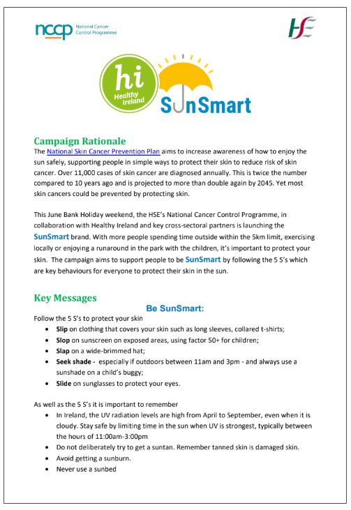 This June Bank Holiday weekend, the HSE’s National Cancer Control Programme, in