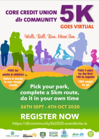 Registration for the event is online through https://dlrcommunity5k2020.eventbrite.ie and there is no registration fee, however if you would like to make a donation to a local charity of your choice that would be very much appreciated.