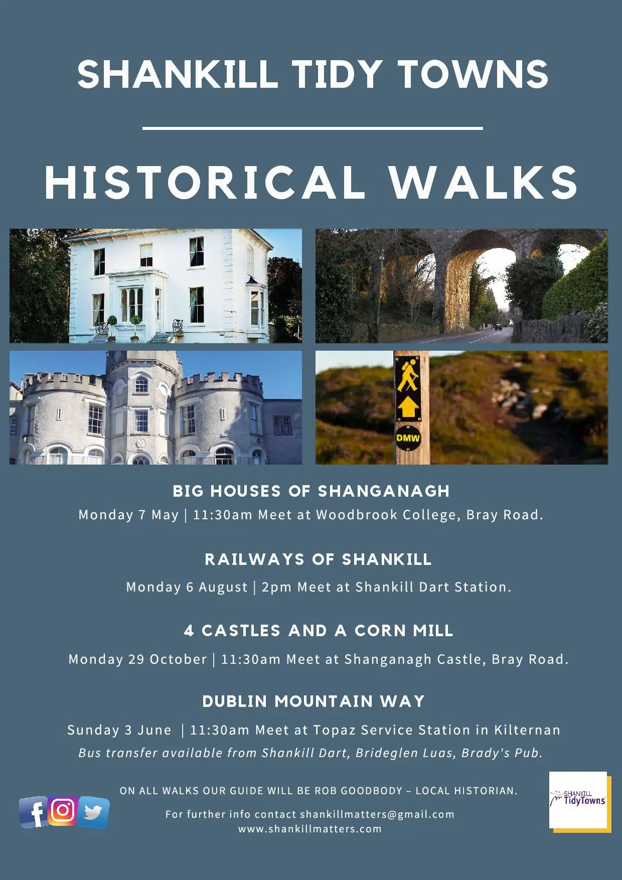 Shankill Tidy Towns will be hosting a number of historical walk around the local area all the walks will be guided by Rob Goobody local Historian. For more information email […]