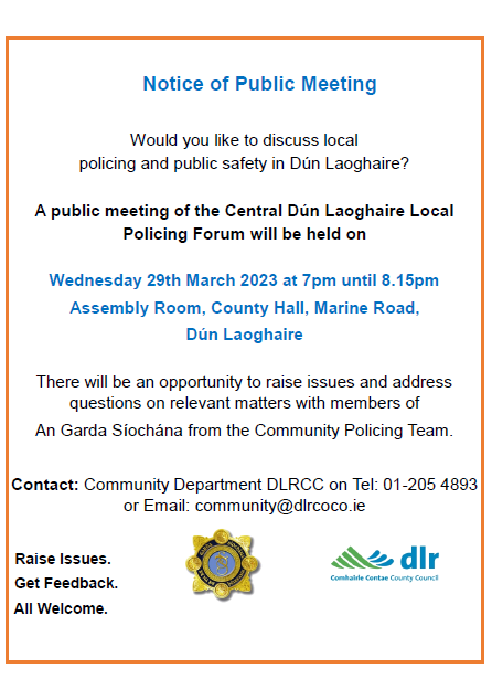 Central Dún Laoghaire Local Policing Forum Notice of Public Meeting