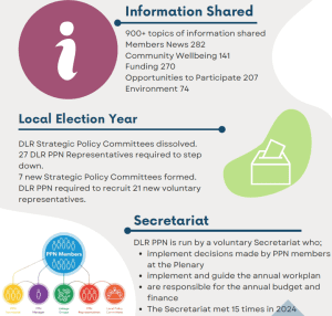 • Between 2015 and January 2025, DLR PPN was hosted by Southside Partnership DLR. Department of Rural and Community Development have been proactive in supporting the PPN to find a new hosting organisation starting August 2024.
