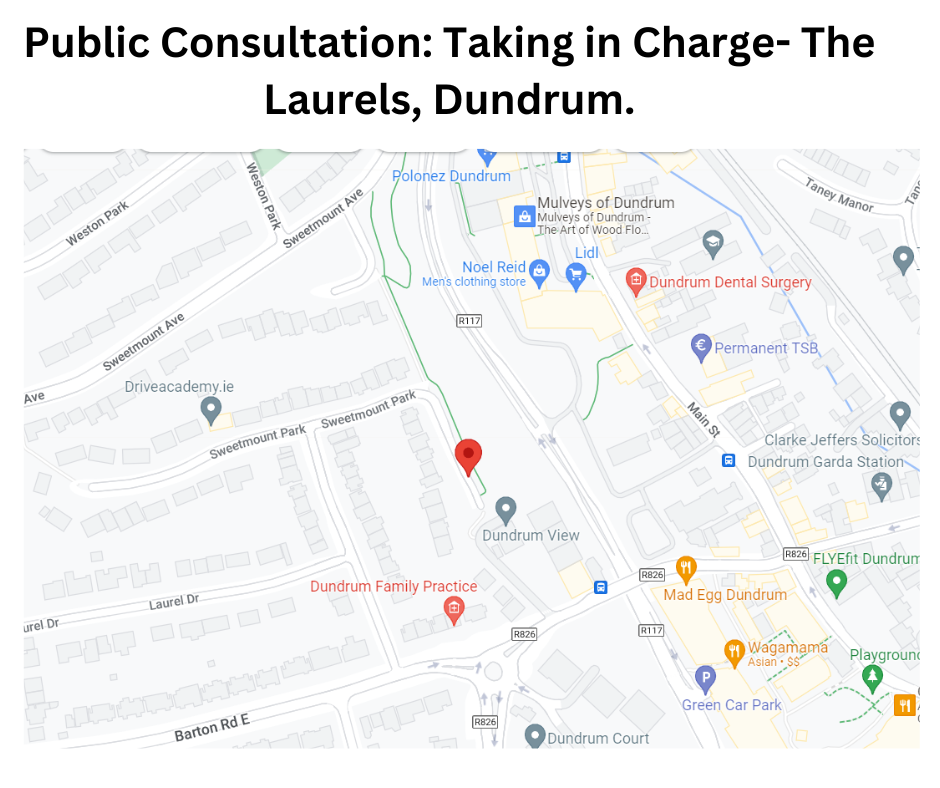 Objections or representations may be made in writing to the Senior Executive Engineer, Roads Maintenance, Dún Laoghaire-Rathdown County Council, Ballyogan, Co. Dublin, D18 Cv97 or via Citizen Space.