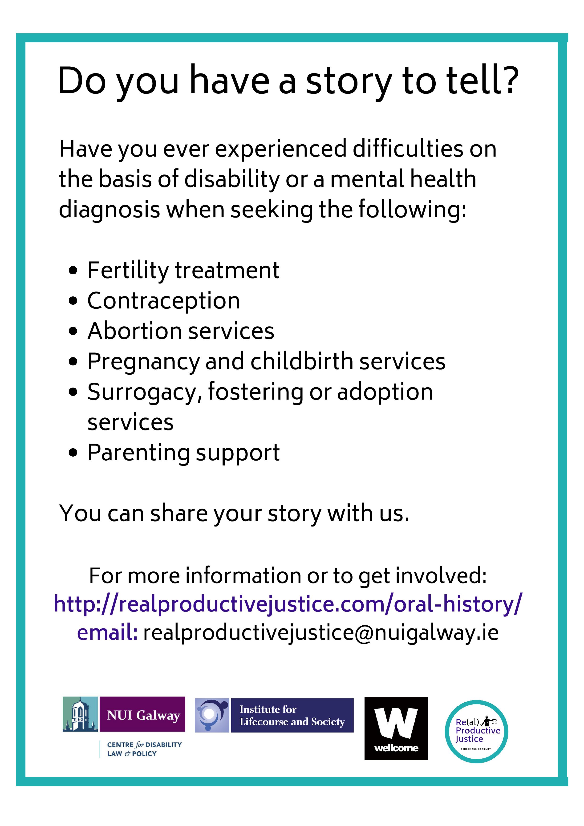 This project will explore the legal regulation and the real life experiences of disabled people in Ireland in making reproductive decisions. As part of this project, disabled people will be invited to tell their stories of making, or being denied the opportunity to make, reproductive choices for themselves.