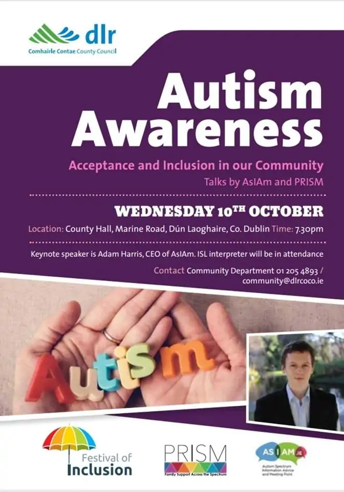 Talks from AsIAm and Prism on Autism Awareness and acceptance and inclusion in our community. Wednesday 10th October, 7.30pm County Hall, Marine Road, Dun Laoghaire, as part of the Festival […]