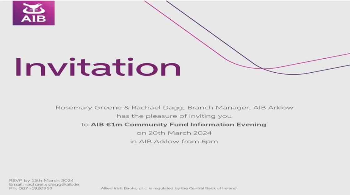 The AIB €1million Community Fund will soon be open for application. Find out more about this fund at an information evening being held in Arklow on 20th March, from 6.00pm. […]