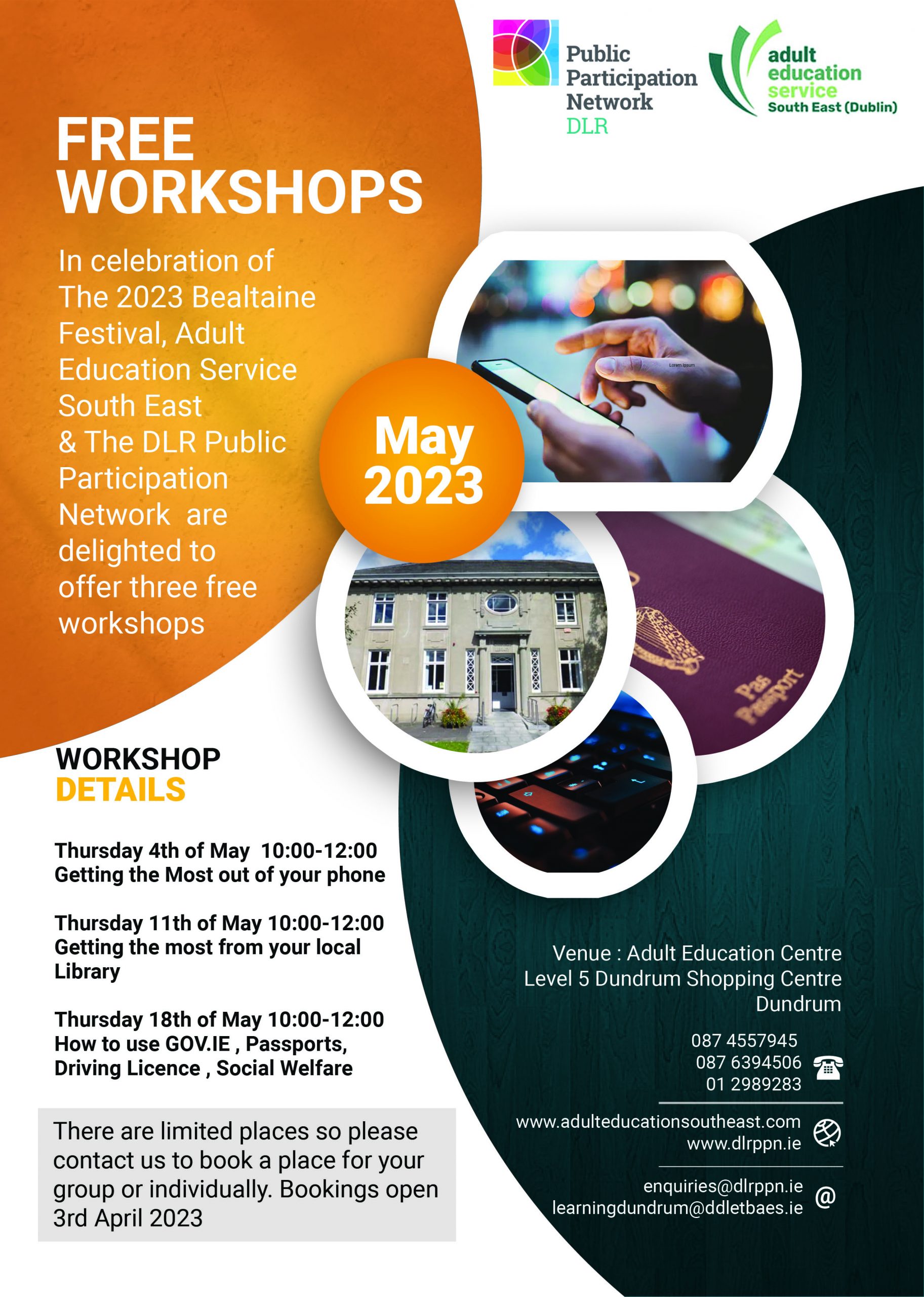 | 18 May 10-12 | How to use Gov.ie | • What is Gov.ie ? • How can I use it? • Logging in • Creating you’re Account • Password -Creating a strong password and how to Remember it • Logging in to you Gov.ie Account • What Services are available to you • Editing your Details | Closed |