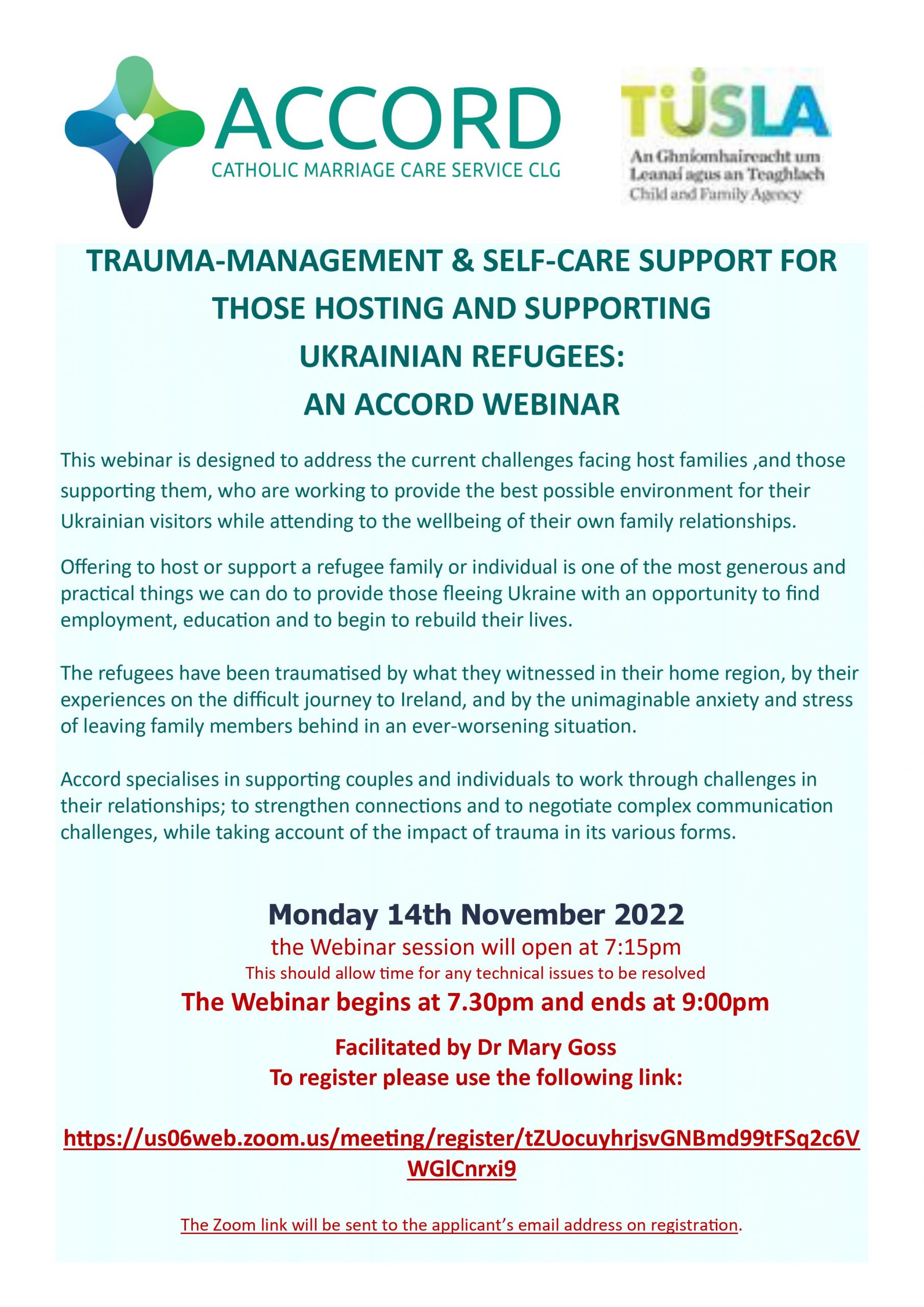 This webinar is designed to address the current challenges facing host families, and those supporting them, who are working to provide the best possible environment for their Ukrainian visitors while attending to the well-being of their own family relationships.